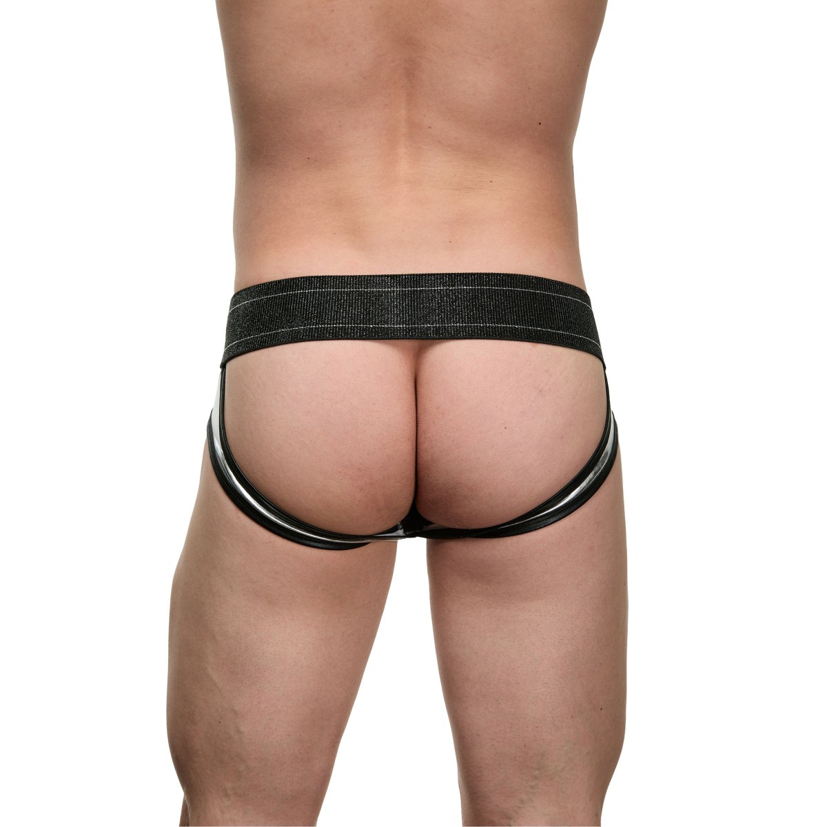 Мужские блестящие серебристо-черные трусы-джоки.