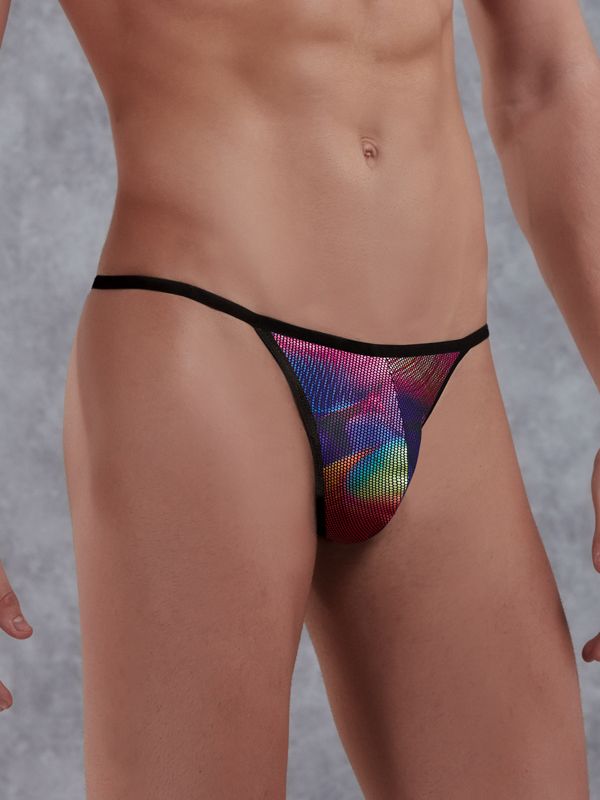 Минималистические мужские стринги-ниточки от «Doreanse» из мягкого эластичного материала с яркими разноцветными блестящими разводами в «мистической» цветовой гамме оперения легендарной птицы Феникс.
