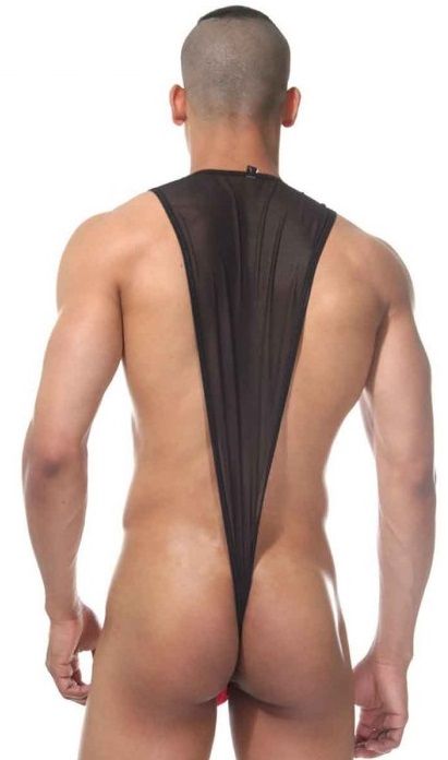 Оригинальное боди для мужчин, в котором скомбинирована верхняя полупрозрачная с контрастным гульфиком.