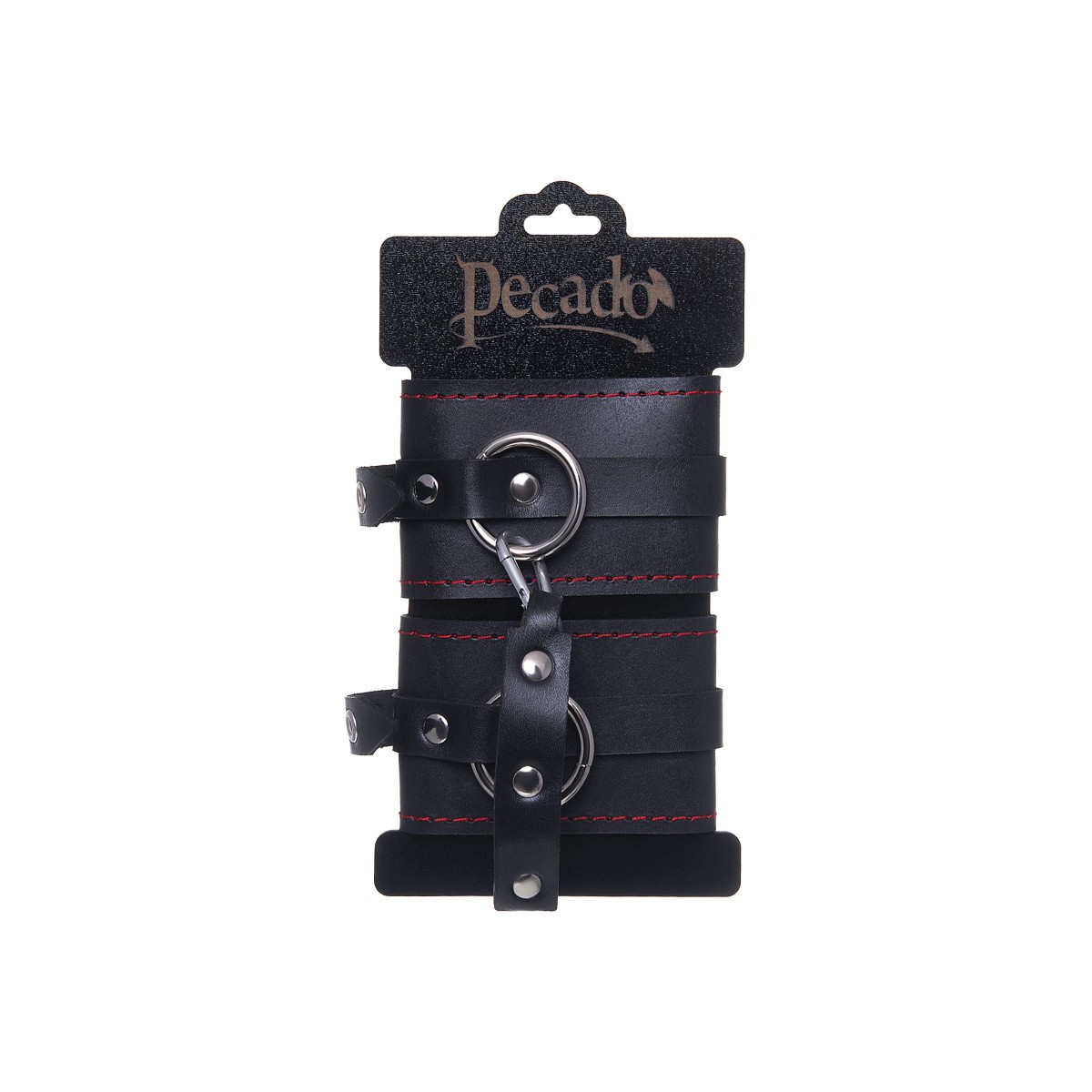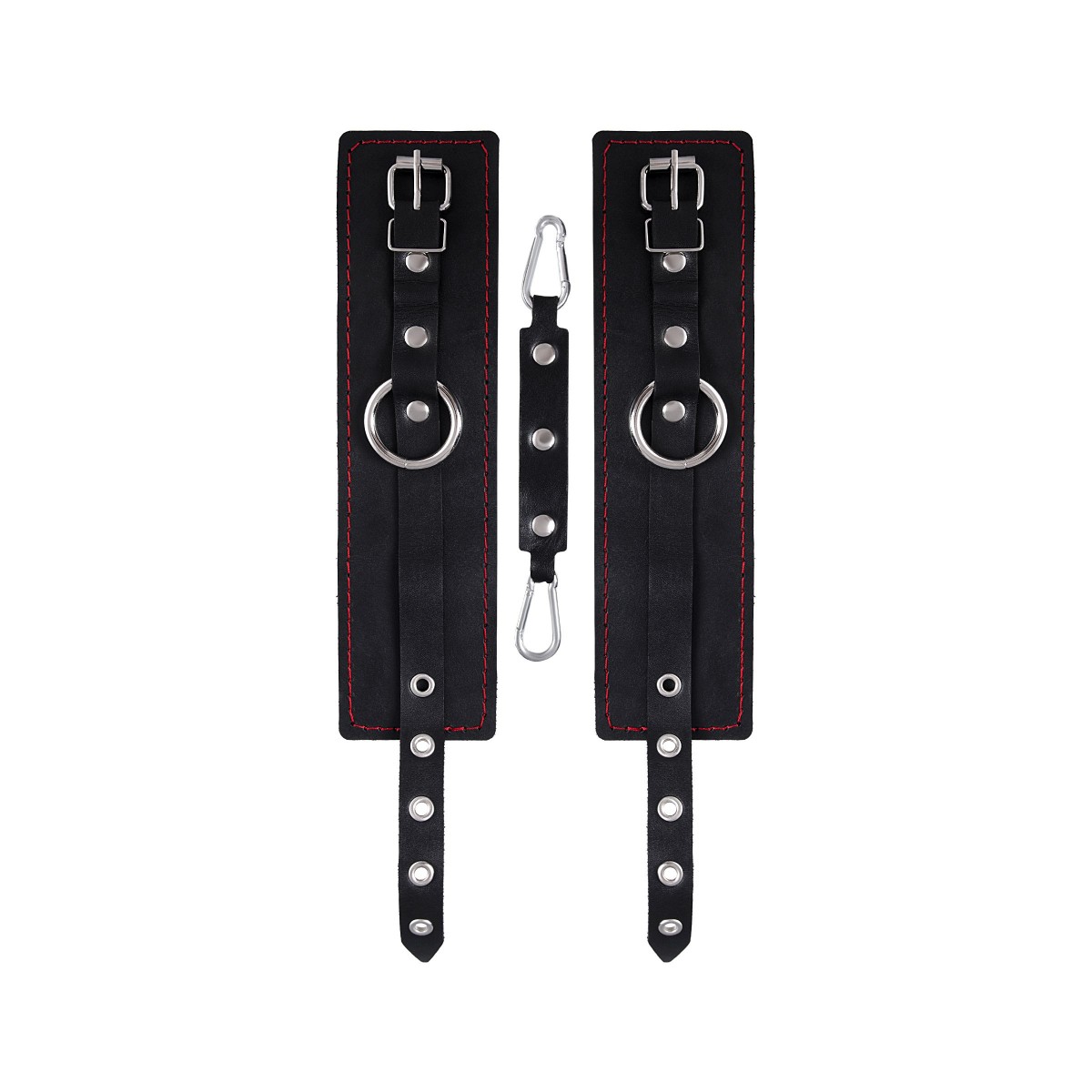 Эти однослойные кожаные оковы с контрастной строчкой красного цвета могут стать стильным аксессуаром, а могут послужить вашим целям по своему прямому назначению. Частичное обездвиживание и невозможность двигать руками или ногами дают вам полную власть над партнером – взрослые игры для взрослых. Наличие двух колец и карабинов, соединенных между собой кожаным ремешком, позволяет использовать изделие как раздельно – аксессуар-манжеты, так и как оковы для фиксации. К широким металлическим кольцам также можно присоединить и другие аксессуары при помощи карабинов. Благодаря универсальному размеру оковы могут использоваться и мужчинами, и женщинами. Размер легко регулируется с помощью металлических пряжек, органично вписывающихся в общий стиль. Длина манжет - 25 см, ширина - 6,5 см. Длина сцепки - 17 см.