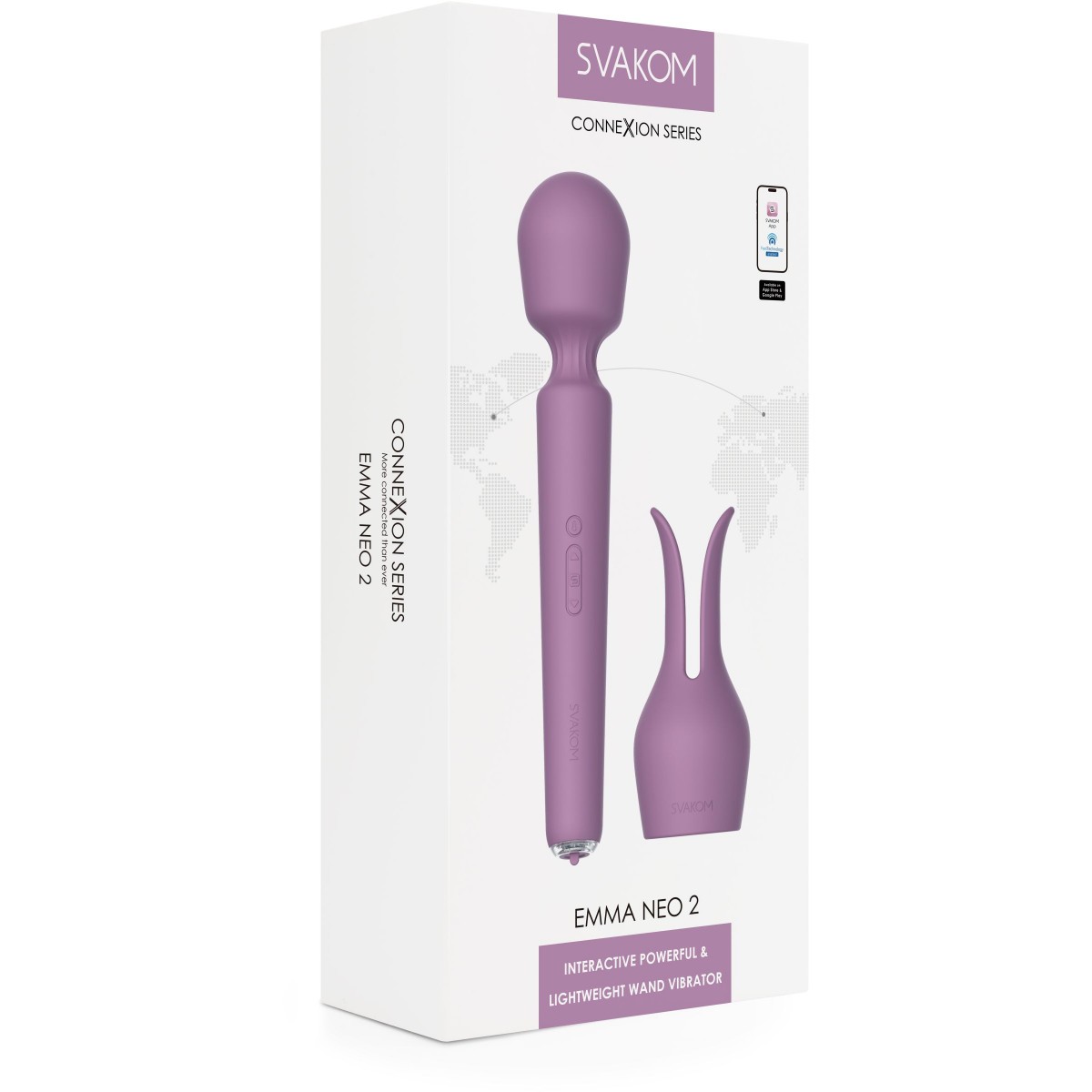 Ищете что-то, что преобразит ваши ощущения? Emma Neo 2 — это мощный и интерактивный wand-вибратор, который объединяет инновационные технологии и эргономичный дизайн, чтобы подарить вам удовольствие нового уровня. Глубокие, мощные вибрации. Они проникают глубже поверхностных ощущений и дарят невероятное наслаждение. Управление через приложение. Настраивайте вибрации, играйте на расстоянии или синхронизируйтесь с эротическими видео и музыкальными ритмами через приложение SVAKOM. Головка вибратора нагревается до комфортных 38°C, создавая ощущение естественного тепла. 5 виброрежимов, 5 уровней интенсивности и режим SVAKOM, имитирующий ритмы секса, позволяют настроить устройство под любые предпочтения. Превратите ваш wand в игрушку для точечной стимуляции или парной игры: насадка с ушками идеально подходит для клитора, сосков, члена, промежности и других эрогенных зон. Изменение цвета подсветки позволяет легко ориентироваться в режимах и добавляет визуального удовольствия.